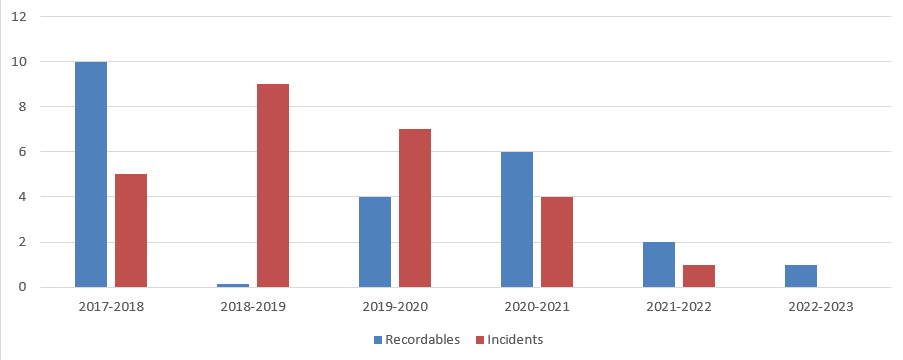 GSW is committed to the safety and health of all associates and comply with all regulatory requirements. With the goal of zero, our incidents and recordables have significantly declined since FY 2020-2021. During the first six months of FY 2022-2023, we have experienced no incidents and one recordable. We continuously strive to reduce risks of injuries including coordinating between safety, engineering, tooling, and production to ensure equipment modifications or new equipment are free of safety concerns, such as pinch points.